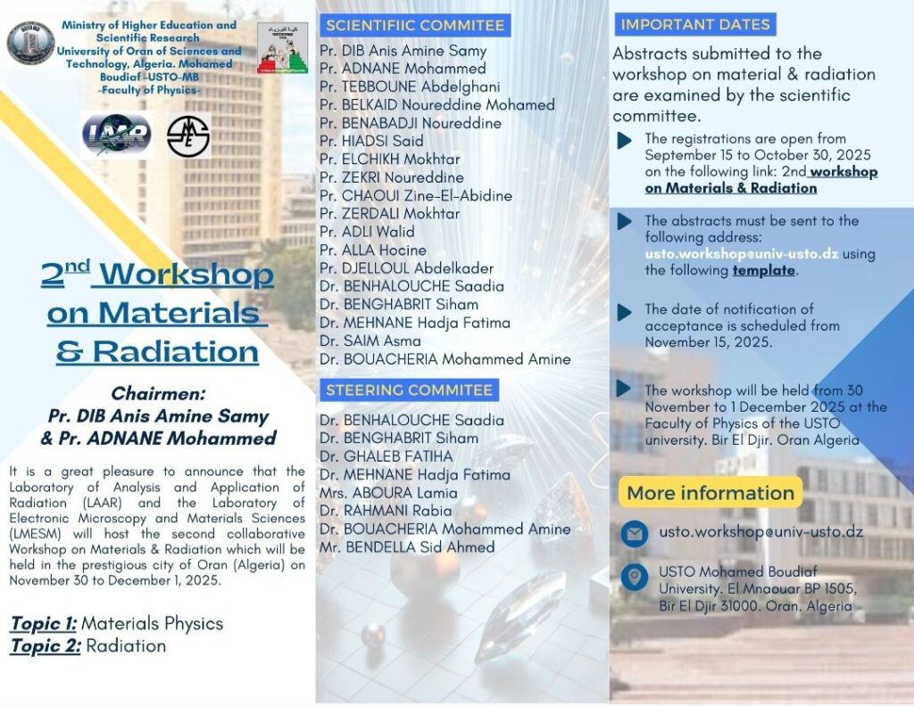 حفل تخرج نظمته كلية الفيزياء في جامعة وهران للعلوم والتكنولوجيا محمد بوضياف، تحت إشراف الأستاذ المميز حمو أحمد مدير الجامعة. وشهد الحفل تخريج طلبة في عدة تخصصات منها ماستر فيزياء Lire la suite …