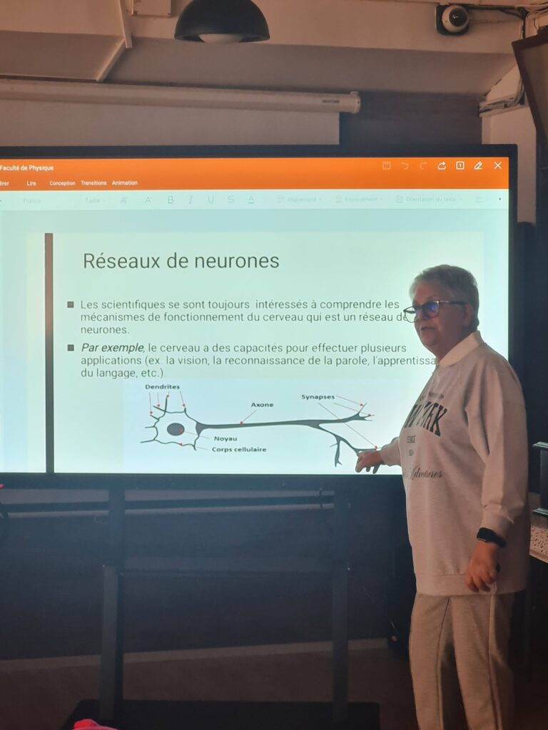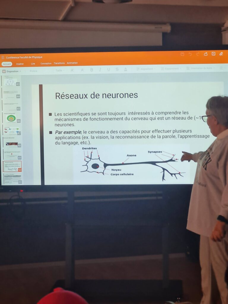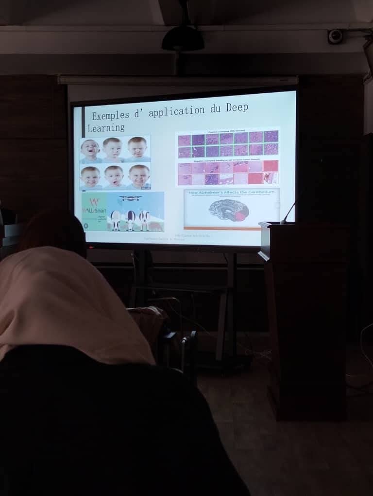 Aujourd'hui, la professeure Ben Dallah Fatima Al-Ma'a a donné sa deuxième conférence consécutive sur « L'évolution de l'intelligence artificielle » dans l'amphithéâtre de la faculté de physique. Voici quelques photos.