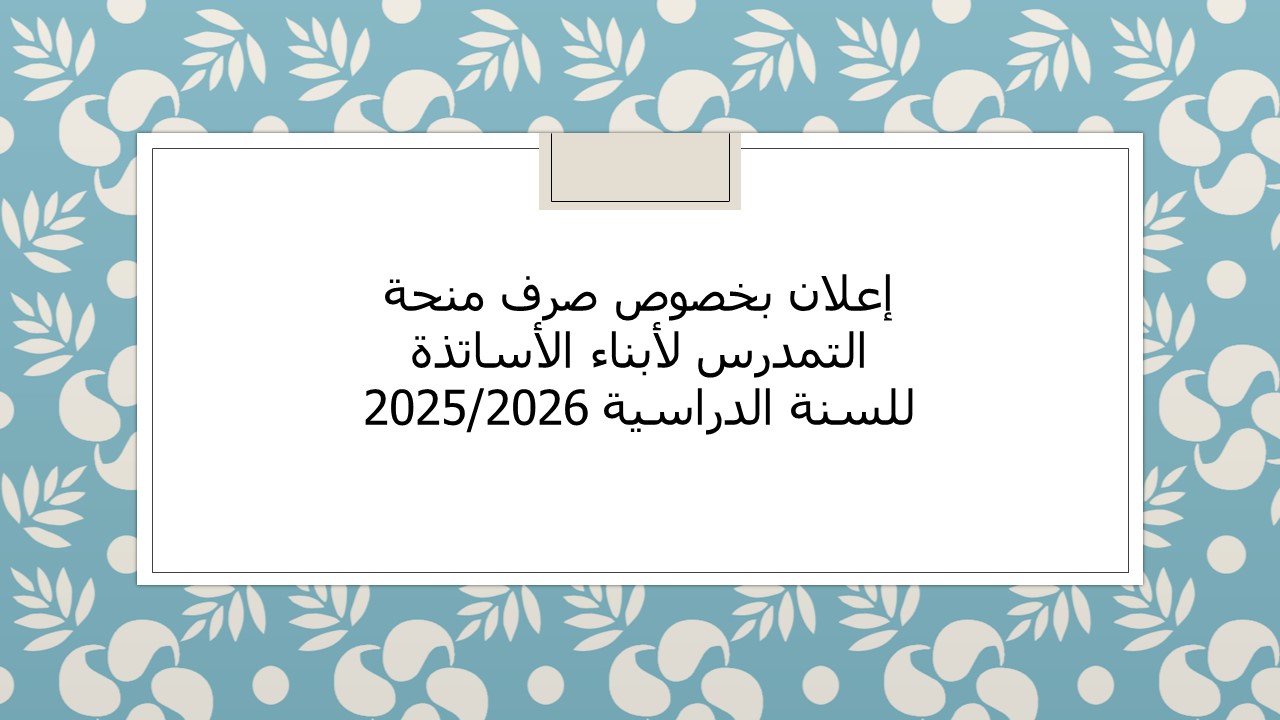 إعلان بخصوص صرف منحة التمدرس لأبناء الأساتذة للسنة الدراسية 2025-2026