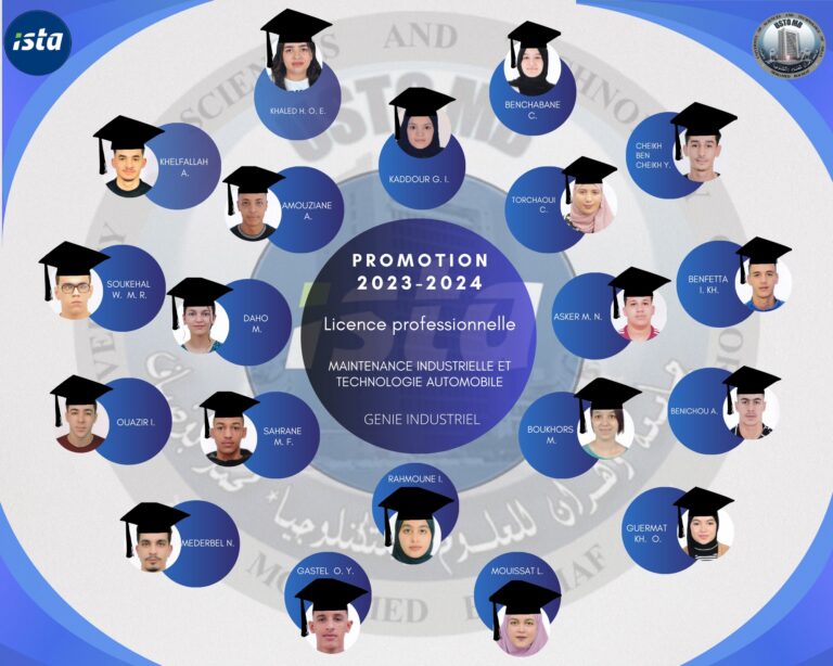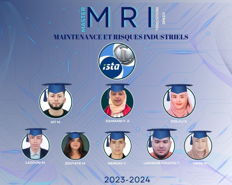Trombinoscope Trombinoscopes ISTA Trombinoscopes étudiants Master : MAINTENANCE ET RISQUES INDUSTRIELS (MRI) Promotion 2023-2024 Trombinoscopes étudiants Licence : Maintenance Industrielle et Technologie Automobile (MITA) Promotion 2023-2024 Trombinoscopes étudiants Licence 1ère année : Management des unités de production (MUP) Trombinoscopes étudiants Licence : Maintenance Industrielle et Technologie Automobile (MITA) 1ère Promotion 2019-2022