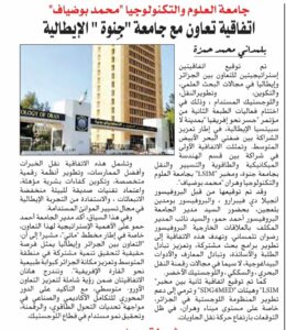Dans le cadre du développement des relations scientifiques internationales, l’Algérie et l’Italie ont signé deux accords de coopération visant à renforcer les échanges en matière de recherche, d’innovation et de formation.